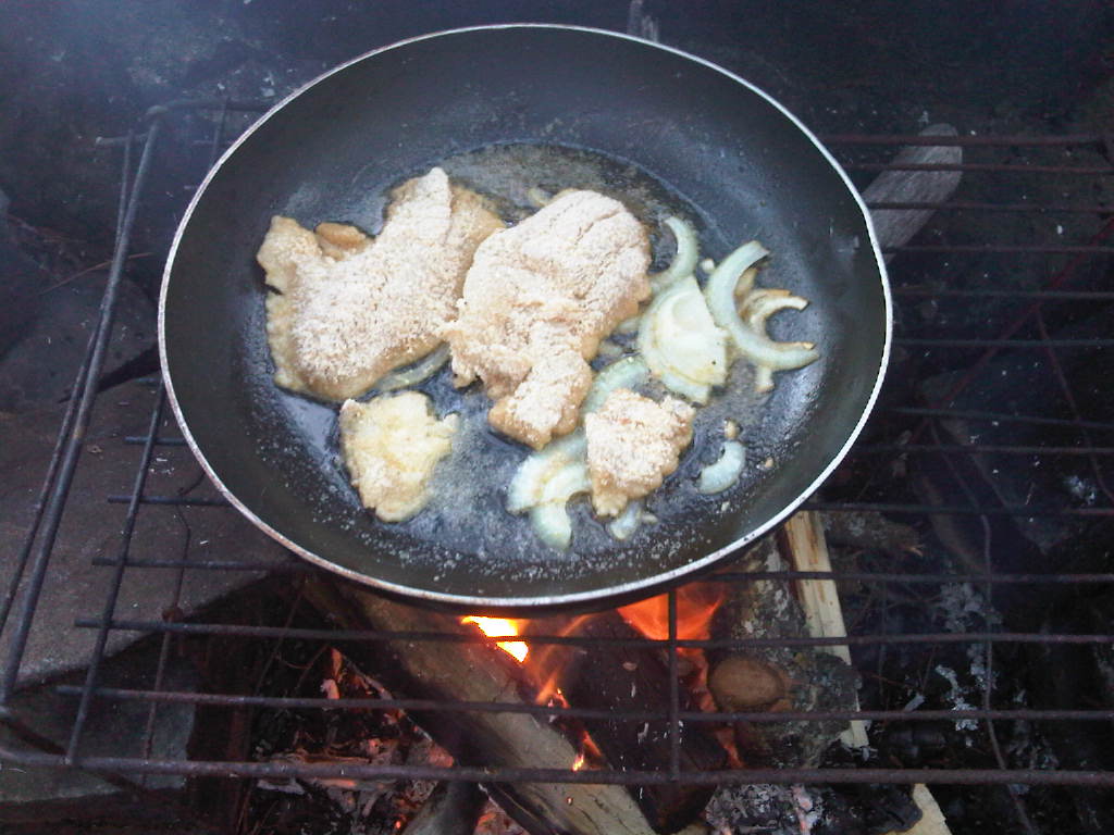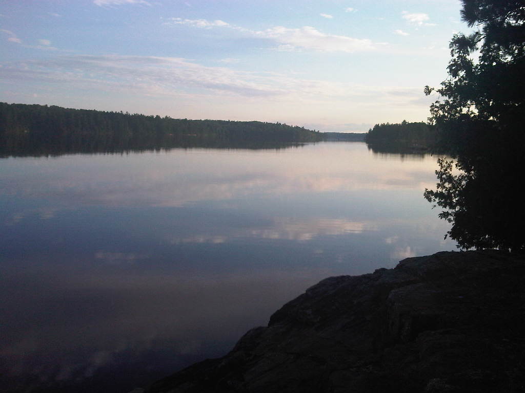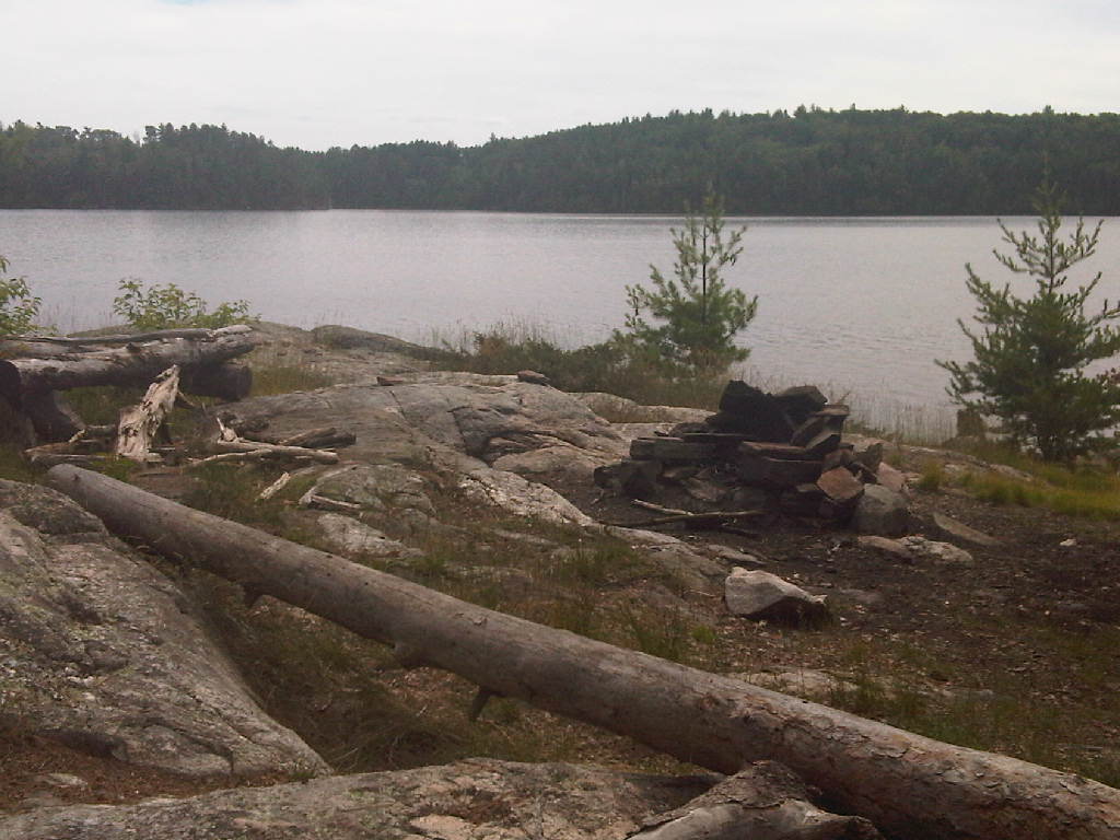 It was now 3 in the afternoon and rain was starting to threaten overhead. I took another half hour to set up my trolling rig, snack, rehydrate and consult my maps before pushing off into the little bay protecting Sue Falls. Paddling to the west, I trolled past a set of islands and picked up a smallmouth bass dinner. Perfect. Located my campsite (A2) on a well-sheltered point of land shortly after that and made quick work of cleaning the fish, setting up camp and starting the fire…..as rain started to patter down….one drop…at….a…time. Hate to say it, but good nutrition suffered that meal as fish was followed by s’mores to facilitate a quick cleanup before diving into my tent at 8:30. Fatigue was also setting in!