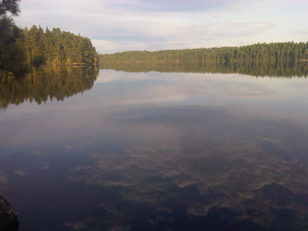 Awoke at 5:30AM. Red sky morning sunrise and out the door at 6:30 to head for the border crossing. Made Atikokan by 8:30AM and self-registered. Stopped by Robins to pick up a blueberry muffin and fresh coffee since I didn’t have time for breakfast in International Falls (a great place!). Headed back west on the Trans Canadian for the 5 ½ miles to the Lerome Lake access/put-in. Windy! Winds blew from the SW at 12km/hr (7-10 mph or so) with gusts a bit higher. Was blown back into the first bay and had to fight my way through a small islet of reeds into next bay on the eastern coastline where I was promptly blown back into that bay!